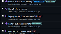 Bug fixes non stop today. The github list is less than half of all the bugs i fixed, as for every bug i fixed two more showed up. Then I got my first playtest, Which gave me some valuable feedback. Wi...