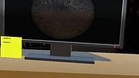 I started adding some decoration around the screen, the idea is to somewhat replicate my desk from back home. I want it to feel somewhat real, and messy. I added a post-it note for the password a keyb...